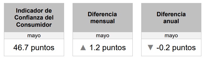 Y lo anterior, porque el Indicador de Confianza del Consumidor (ICC), se colocó en 46.7 puntos, lo que significó un alza de 1.2 unidades respecto a abril pero una caída de -0.2 puntos respecto a mayo de 2024, con lo que ligó cinco caídas en su comparativo anual, es decir, su peor racha desde mediados de 2022.