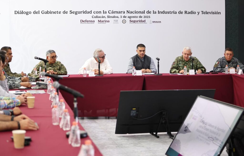 En seguimiento a la instrucción de la Presidenta Claudia Sheinbaum y para mantener una coordinación y colaboración con los medios de comunicación del estado de Sinaloa, los titulares del Gabinete de Seguridad del Gobierno de México, junto con el gobernador Rubén Rocha Moya, sostuvieron un encuentro con representantes de la Cámara de la Industria de la Radio y la Televisión (CIRT) delegación Sinaloa.