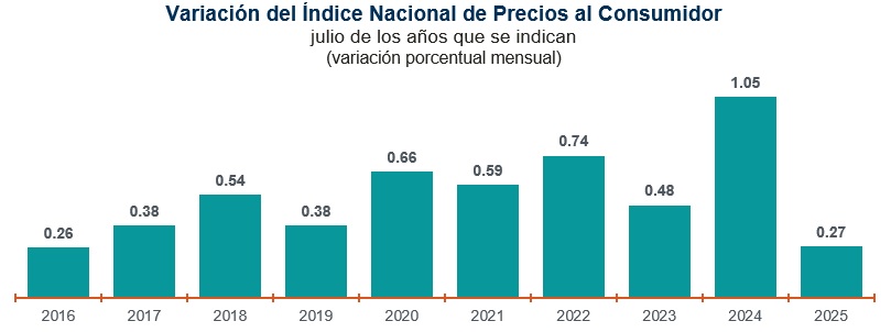 Sobre el tema, analistas de Banamex destacaron que el aumento mensual que reportó el INPC estuvo en línea con sus expectativas. De igual manera, explicaron que el valor de 3.5 por ciento es menor al 4.3 reportado en junio.