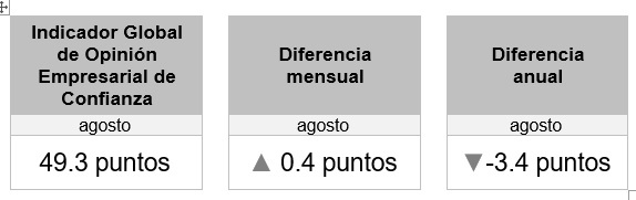 El Instituto Nacional de Estadística y Geografía (INEGI), informó que durante agosto de este año el Indicador Global de Opinión Empresarial (IGOE), se colocó en 49.3 puntos, lo que representó un alza de 0.4 unidades respecto al mes anterior pero una caída de -3.4 unidades con relación al octavo mes de 2024.