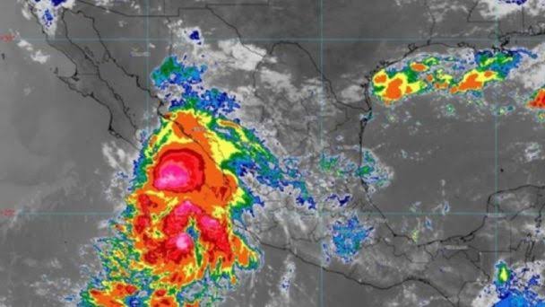 Para hoy y mañana, se pronostican lluvias de muy fuertes (de 50 a 75 mm) a intensas (de 75 a 150 mm) en el sur de Baja California Sur, Sonora, Sinaloa, Nayarit, Jalisco, Colima y Michoacán, así como rachas de viento de muy fuertes a intensas en las costas de esas entidades, las cuales, incluso, podrían alcanzar de 100 a 120 km/h en el litoral de Baja California Sur. Asimismo, se prevé oleaje elevado en zonas costeras de las entidades mencionadas.