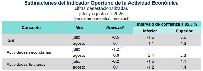 Malas noticias para la economía mexicana, toda vez que el Instituto Nacional de Estadística y Geografía (INEGI), estima que el Indicador Global de la Actividad Económica (IGAE), habría reportado una contracción -0.5 por ciento de junio a julio de este año, mientras que de julio a agosto avanzó apenas 0.1 por ciento, de acuerdo con datos ajustados por estacionalidad.