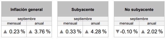 Para dimensionar el actual desempeño de la inflación, cabe recordar que en septiembre de 2024, la inflación mensual fue de 0.05 por ciento y la anual de 4.58 por ciento, mientras que en igual mes del presente año -como se mencionó al inicio de este texto-, los valores fueron 0.23 y 3.76 por ciento, respectivamente.