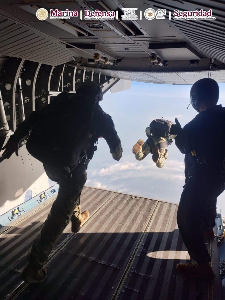 Con el objetivo de robustecer los esquemas de entrenamiento especializado en tareas conjuntas y operaciones especiales, la Secretaría de Marina (Semar) impartió el Curso de Paracaidismo Estático y Caída Libre Militar, enfocado en el desarrollo de técnicas operativas de paracaidismo para infiltración aérea, dirigido a personal de la Unidad Nacional de Operaciones Estratégicas (UNO) de la Subsecretaría de Inteligencia e Investigación Policial de la Secretaría de Seguridad y Protección Ciudadana (SSPC).