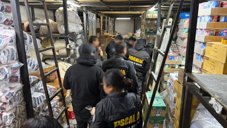 De igual forma fueron intervenidas bodegas y comercios informales en los que se localizaron mercancías diversas como semillas, leche en caja, productos de abarrotes, cubetas con aceite, entre otros productos, de los que no acreditó su procedencia lícita, incluso en uno de los inmuebles fue hallada paquetería de la empresa “Mercado Libre” con reporte de robo.