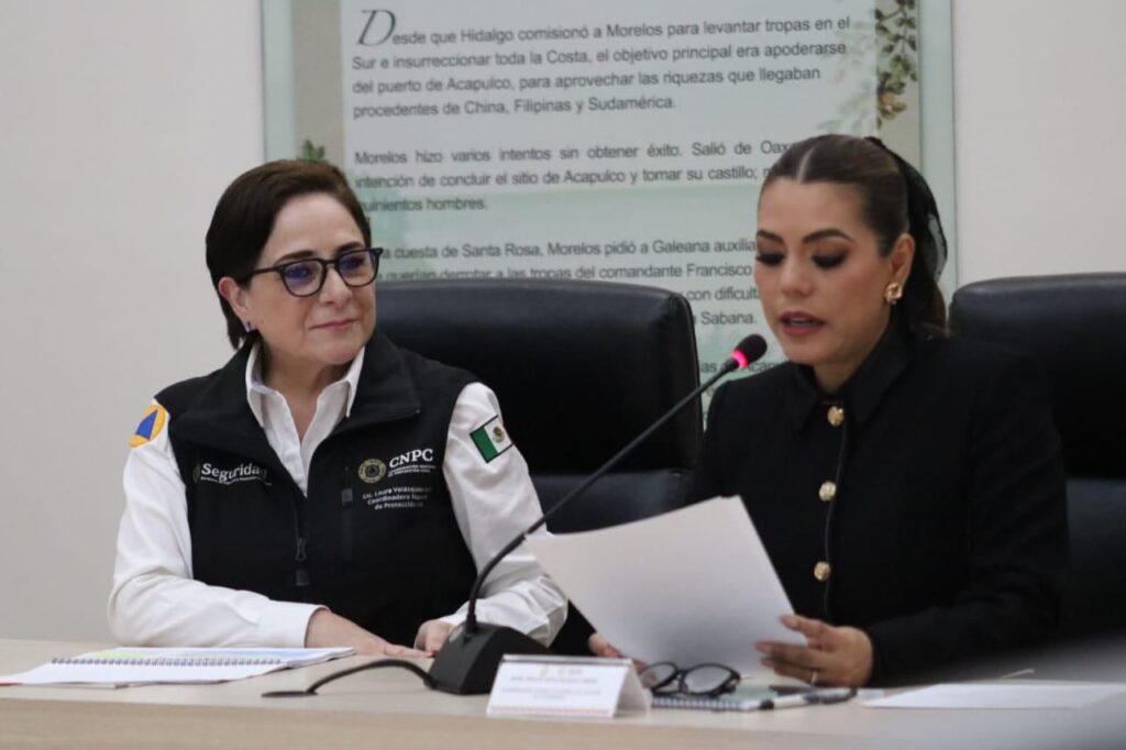 En el marco de las acciones preventivas que impulsa el Gobierno de México, la titular de la Coordinación Nacional de Protección Civil (CNPC), Laura Velázquez Alzúa, de la Secretaría de Seguridad y Protección Ciudadana (SSPC), encabezó una reunión de trabajo con la gobernadora de Guerrero, Evelyn Salgado Pineda, con el objetivo de fortalecer la gestión integral de riesgos en la entidad.