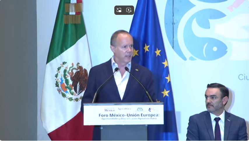 Por otra parte, dijo que si bien México ha firmado 12 tratados comerciales con más de 50 países, el 90% de las exportaciones se concentra en Norteamérica, que si bien ha beneficiado al país también lo ha hecho vulnerable, por lo que la Unión Europea representan una ventana para diversificar al país, ya que es el mayor importador de alimentos en el mundo, con un mercado que supera los 750 mil mdd, es decir, 14 veces más de lo que exporta México al mundo.