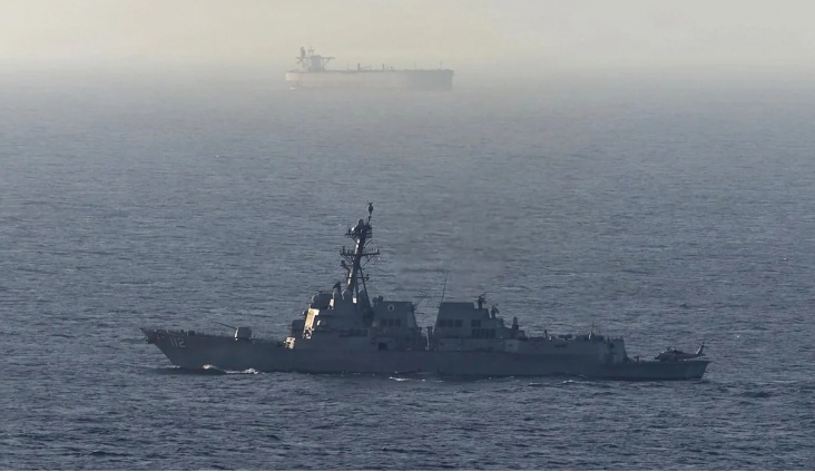 Mientras que un destructor de la Marina de EE.UU. en el océano Índico escolta al barco Dorena “después de intentar violar el bloqueo”.
